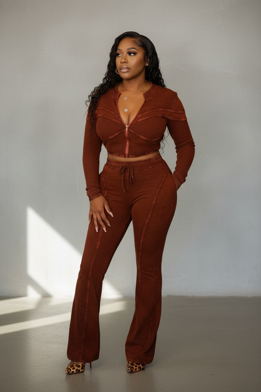Indulge in luxury with our CHECK PLEASE mineral washed 2 piece set. Featuring a ribbed corset-inspired fitted crop jacket and highwaist boot cut pants, this set exudes sophistication and comfort. The mineral washed fabric adds an edgy touch to this sexy ensemble. Elevate your Kellection with this exclusive set.